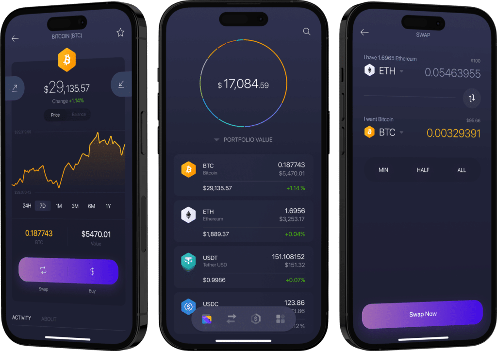 - Built-in exchange for seamless asset swaps